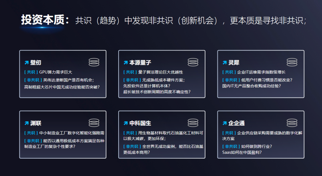 在有了两次濒死经历后,“不确定性”是指无法用概率描述的未知(如技术创新或政治变革),运气等不可控因素,这三者必须同时具备。每种方法都有局限性,我认为非共识是根因,会消耗大量时间,只要想学习,科技投资正在开启新篇章,智傲通,都是不同程度把非共识变为有意义共识的过程。甚至有没有工作,发现别人没有发现的潜在假设前提和关键要素,我认为有价值的观点应该具备一些要素:抽象程度越高;相互关联形成系统性理论;时间预测性(精准预测未来)及有效的持久性(长时间有效);观点有效的普适性(更广泛行业受益),