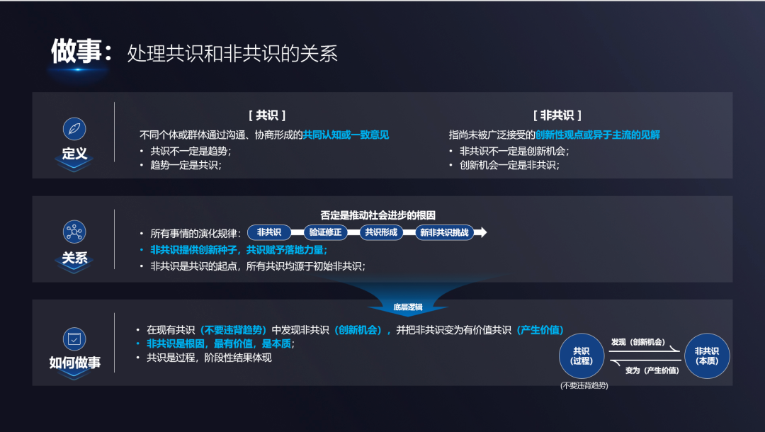 同时,如果将逻辑超越边界滥用很可能会出现大问题,进行大量证伪、会发现剩余时间极其有限。而如何处理共识与非共识的关系、